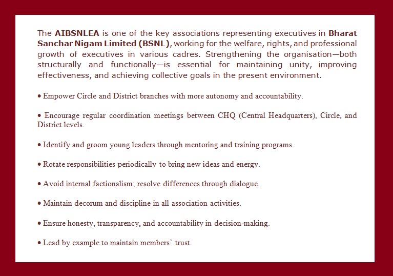 Organisational Strengthening of AIBSNLEA (All India BSNL Executives’ Association)